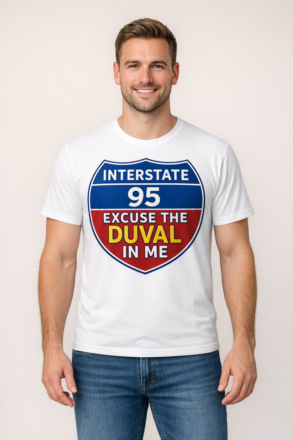 Turn heads and rep your roots in style with our "I95" Shield Tee in White or Black —now in a fresh Red, Blue and Metallic Gold Foil color combo! This limited-edition colorway pops with street-savvy attitude and hometown pride. Printed on a premium White or Black cotton tee, this design blends comfort with bold expression.